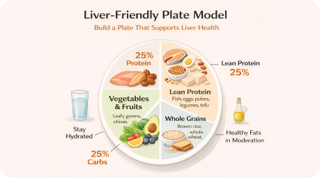 enhance its function. The Liver-Friendly Plate model emphasizes the importance of the right food choices and hydration.